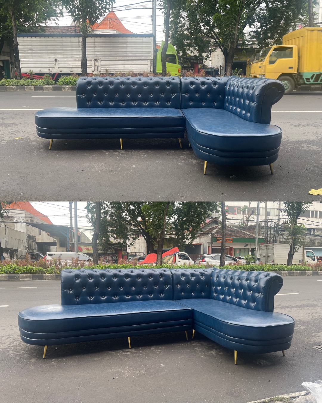 Sofa Custom Surabaya – Sofa L Blue Classic
