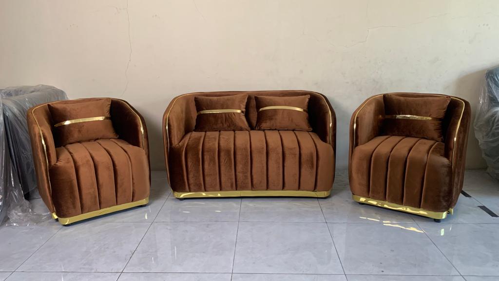 Rizky Mebel Buat Furniture Surabaya membuat sofa ini dari bahan premium yang dilapisi kain sofa yang bagus, memberikan sentuhan mewah dan kenyamanan yang luar biasa. rangka yang kokoh dan bantalan empuk dirancang untuk memberikan daya tahan serta dukungan terbaik, menjadikannya pilihan ideal untuk kegiatan sehari-hari bersama keluarga.