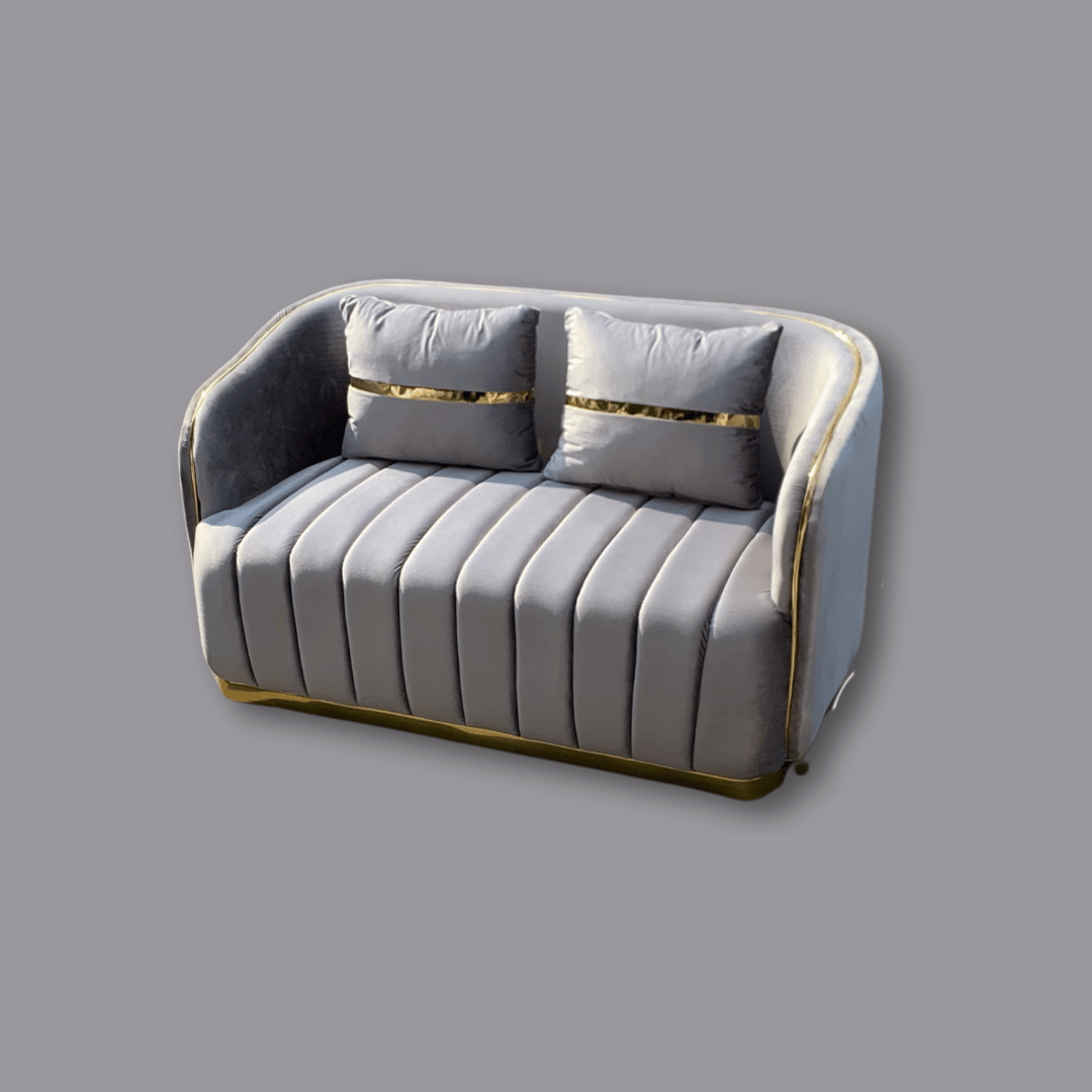 Eezi 2 Seater – Grey Bludru Gold Aksen